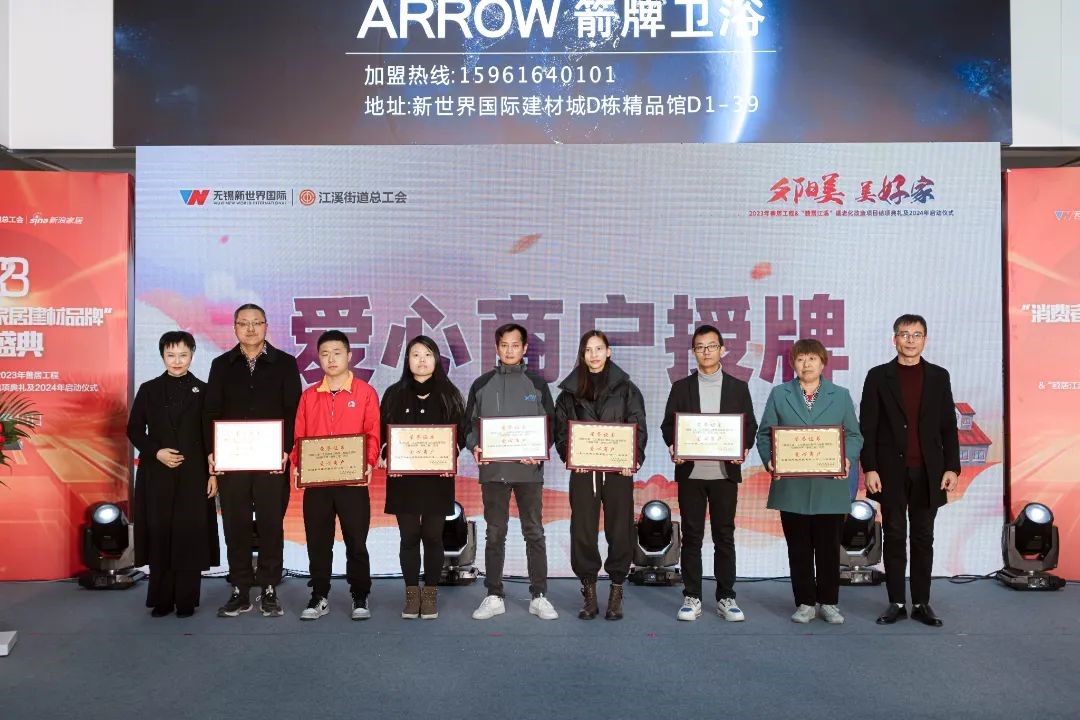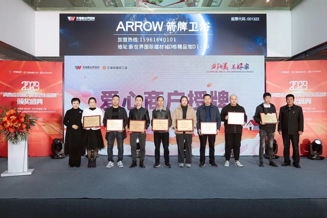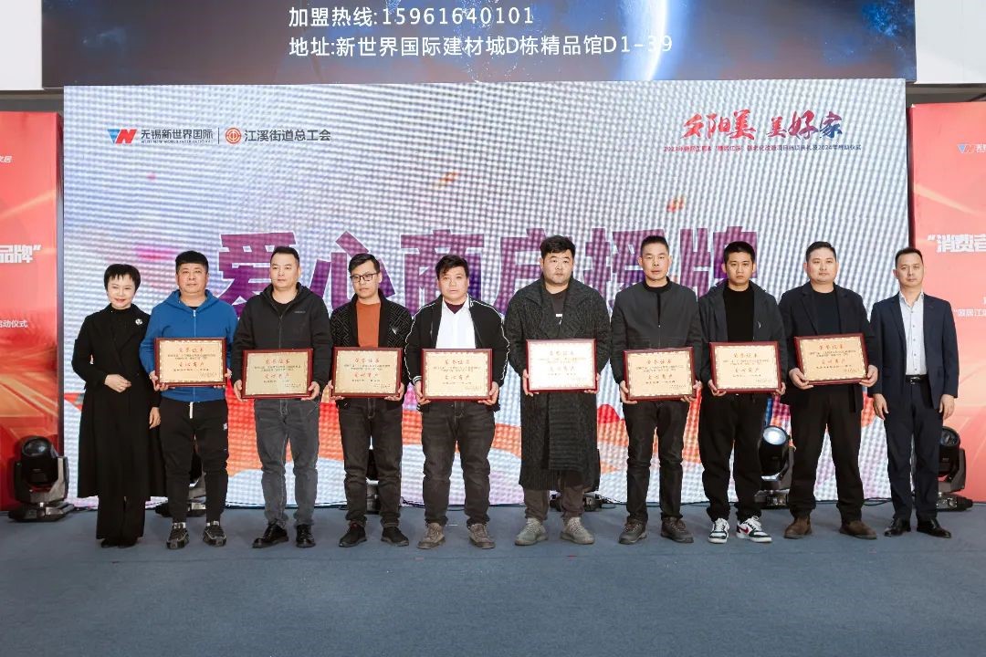 11月19日下午2:00,“2023消費(fèi)者信賴的家居建材品牌評(píng)選頒獎(jiǎng)典禮暨2023年適老化公益改造項(xiàng)目結(jié)項(xiàng)典禮及2024年啟動(dòng)儀式”在無(wú)錫新世界家居建材城D館一樓順利舉辦,無(wú)錫市新吳區(qū)江溪街道總工會(huì)主席/梁岱紅、無(wú)錫新世界商貿(mào)市場(chǎng)管理有限公司副總經(jīng)理/莫星勤、無(wú)錫新浪家居運(yùn)營(yíng)總監(jiān)/周吉軍、無(wú)錫新世界商貿(mào)市場(chǎng)管理有限公司黨支部書記/李大安、無(wú)錫新世界家居建材城一期經(jīng)理/沈其華、無(wú)錫新世界家居建材城二期經(jīng)理/魯曉順等領(lǐng)導(dǎo)嘉賓,以及40余位品牌商戶代表齊聚一堂,共同參與和見證了本次盛典。